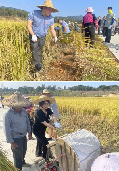 秋意漸寒,稻谷飄香。為深入貫徹習近平總書記關(guān)于實施鄉(xiāng)村振興戰(zhàn)略和糧食安全的重要論述,以學促干,推動學習貫徹習近平新時代中國特色社會主義思想主題教育見行見效2023年117上午,市政集團黨支部組織全體黨員干部龍州濕地項目開展“傳承蘇區(qū)好作風 四下基層促發(fā)展”主題黨日活動,全面助力稻谷收割工作。