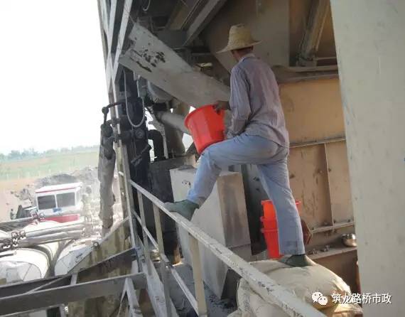 人工進行固體溫拌劑的添加