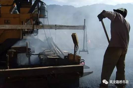 ?。?)用機械攤鋪的混合料未壓實前,施工人員不得進入踩踏。一般不用人工不斷地整修,只有在特殊情況下,如局部離析,需在現(xiàn)場主管人員指導下,允許用人工找補或更換混合料,缺陷較嚴重時應予鏟除,并調(diào)整攤鋪機或改進攤鋪工藝。